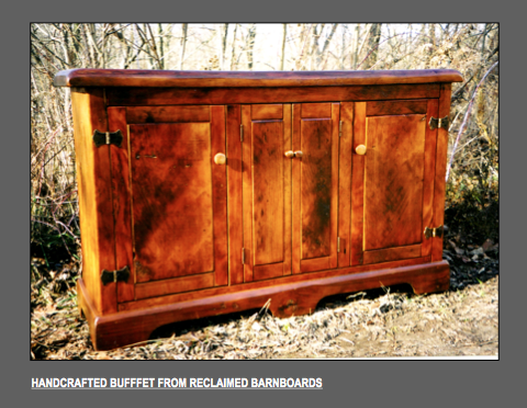 I have a special love for reclaimed wood and objects with history from old homes, barns and antique stores, all of which found their way into my works of art. Aged wood has such a beautiful patina, rich aroma and intriguing traits like intricate bore holes and dark hued rust spots where a hand forged nail once stood. Each rough-hewn plank, scuffed floor board, door with worn paint, or old nail contributed uniquely when re-fashioned into something new, whether it be a sideboard, mirror, buffet, bench, lamp or coffee table.