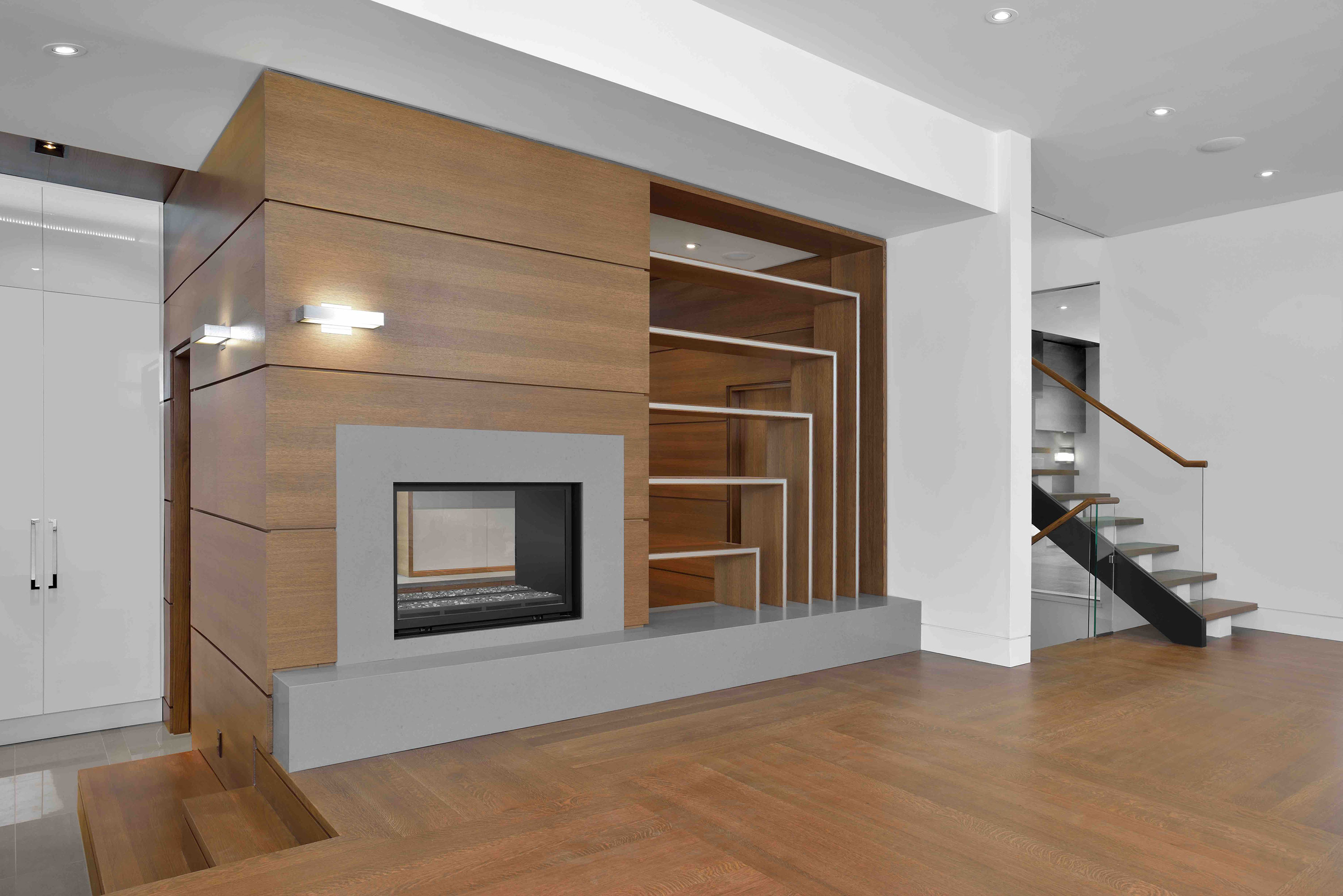 The client, a residential spec home builder, engaged Tomas Pearce Interior Design Consulting (TPIDC) to design a bespoke, contemporary residence on a 3/4 acre site. The home was designed with an open concept throughout the ground floor featuring cleverly connected living spaces. A crisp, clean material palette with an abundance of timber and natural stone was carried throughout the entire home. The beautifully appointed principal rooms and the master suite incorporated gas fireplaces, extensive glazing, and an abundance of built-in storage. Andy was the design lead for this project.